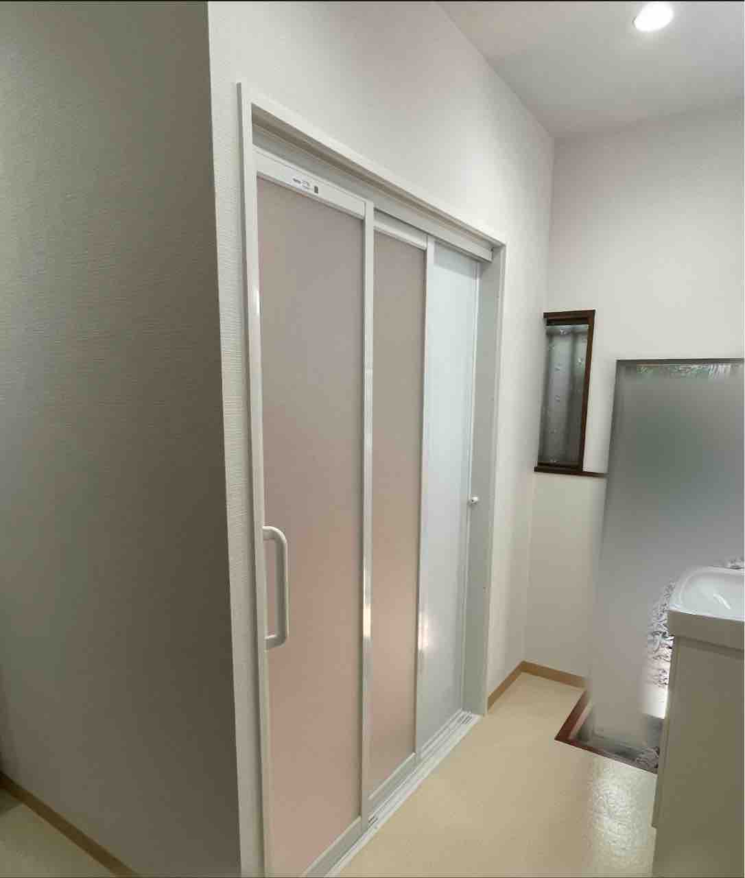 ご高齢の方も使用される為、ご家族の思いで手すりも多めに取付、扉も開口部が広く取れる引戸にしました。